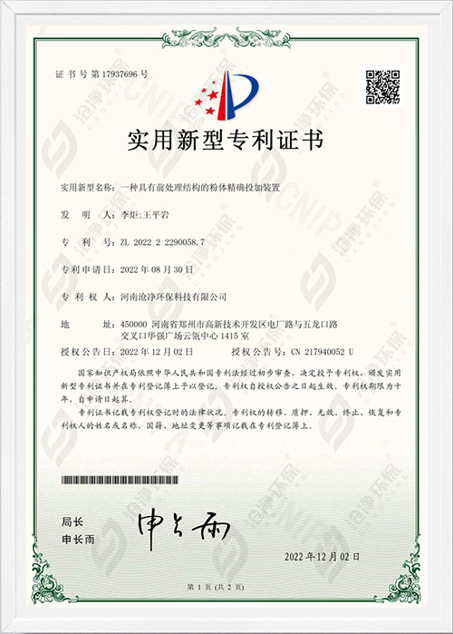 滄凈環(huán)保,是一家集科研、設(shè)計,工程施工、調(diào)試于一體的智能粉體投加系統(tǒng)-國家級高新技術(shù)企業(yè)【編號:GR202341000885】,旗下產(chǎn)品涵蓋水處理、危廢固廢處置,脫硫脫硝處理等領(lǐng)域,且通過ISO 9001:2015質(zhì)量管理體系認證。